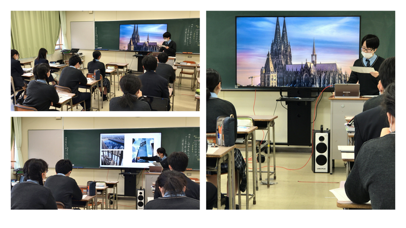 10月22日(金)5時間目に生徒一人一台端末を活用した日本史の研究授業を実施しました。班別に分かれてパワーポイントを用いたクイズ大会を実施しました。各自の解答をclassi(アンケート機能)に入力して正解率をグラフ化したり、授業評価や問題作成の過程で気づいた点や疑問点などをclassi(ポートフォリオ機能)に記録したりする活動をしました。