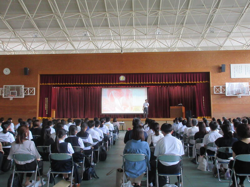 本校のカリキュラムや進路状況、学校生活、国際交流等について、教員(教務課、キャリア探究課)や生徒会役員、インドネシア研修参加者より説明させていただきました。