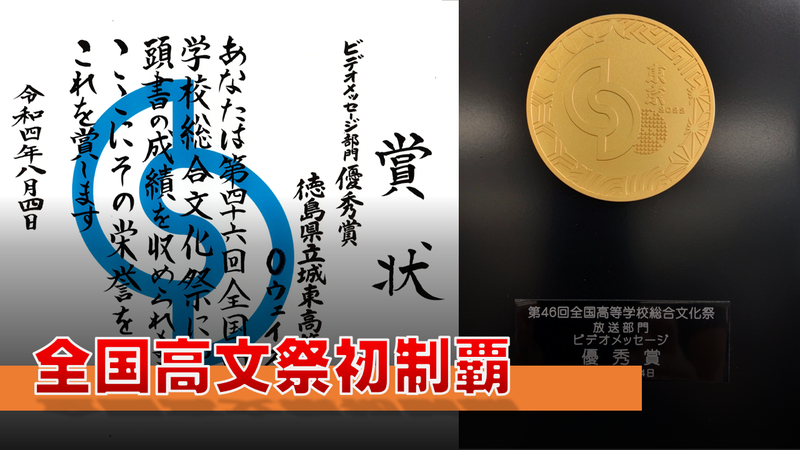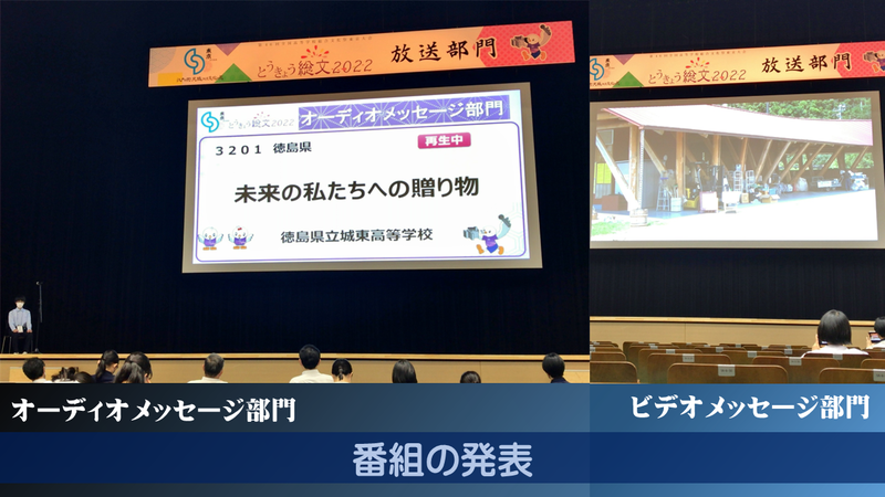 最終日の4日,飛行機の時間の関係で徳島県のアナウンス部門発表が終わった後会場を出たため,閉会式に出席することができなかったのですが,空港でビデオメッセージ「0ウェイスト」が第1席にあたる優秀賞を獲得したことを知らされ,部員一同喜び合いました。なお,徳島県は朗読部門でも城北高校の生徒さんが優秀賞に入り,ダブル受賞となりました。徳島県から2部門で頂点に立ったのは10年ぶり2度目の快挙でした。